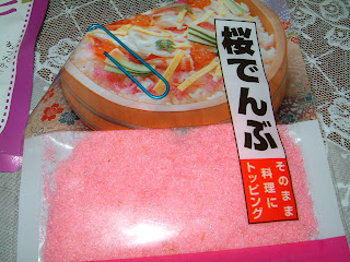 This pink powder is called "sakura denbu", or sweetened fish flakes.